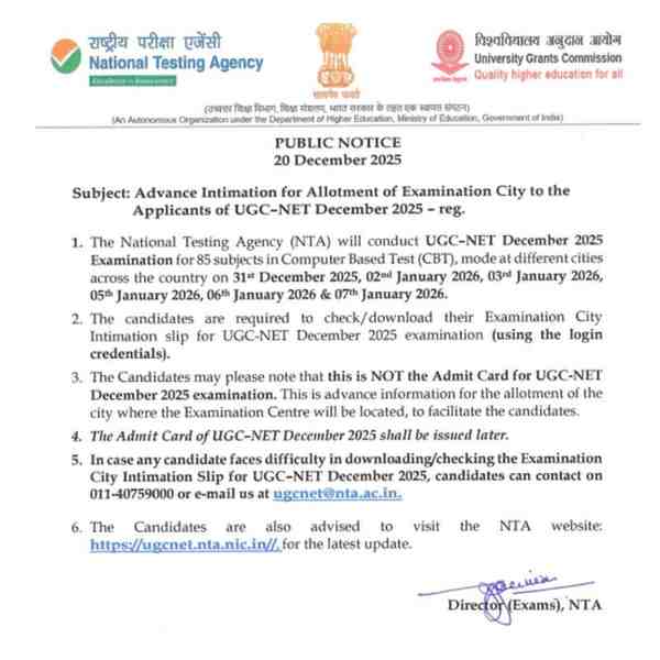 UGC NET Exam Dates City Intimation Slip Admit Card